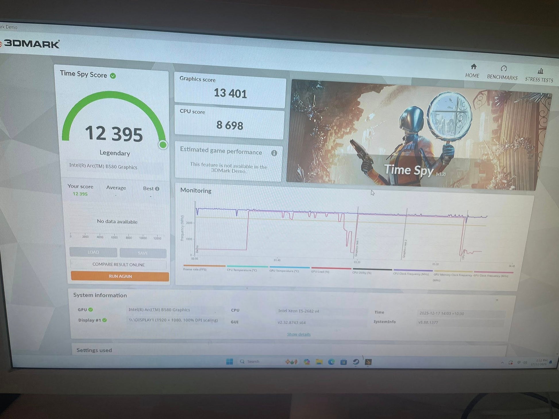 3Dbenchmark downloaded and installed. Go 12 395 score in TimeSpy( around Ryzen 5 7500f and RTX 5060 score).